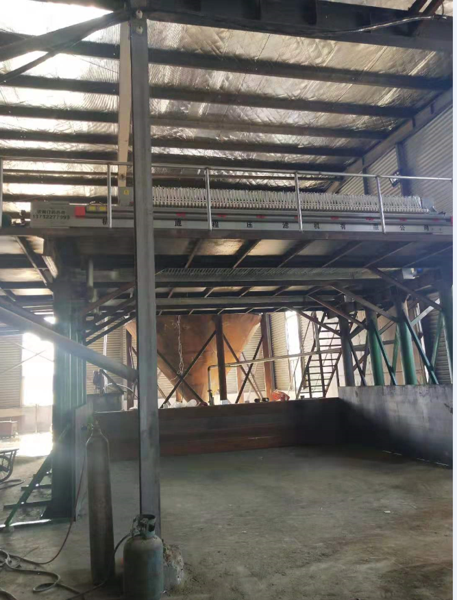 分體式高壓壓濾機(jī),二次壓榨,電動(dòng)液壓,自動(dòng)保壓,自動(dòng)拉板卸料。